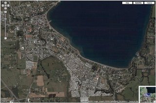 Legenda: A - Puerto Varas, B - Nueva Braunau, C - Puerto Montt, D - jezero Llanquihue, E - sopka Osorno,