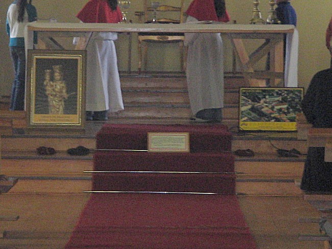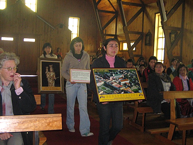 Hola mi nombre es Andrea González, vivo en Nueva Braunau. Nos enteramos de su visita y del regalo traido de la TAUMATURGA, por eso le envío fotografías de la entronización de ella en la Parroquia Santa Rosa de Lima. Le envío un grato saludo para Usted y su familia. Gracias por traernos a nuestra madre.